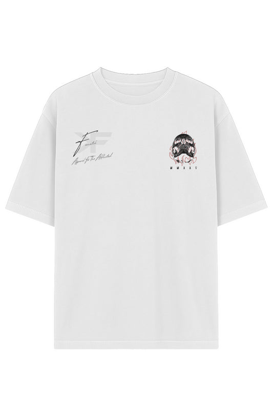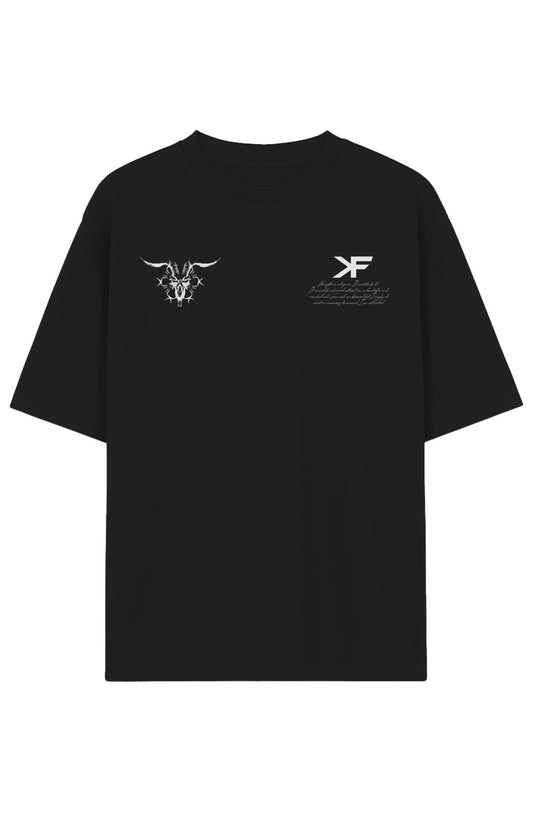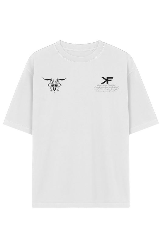 DEMON OF IRON GARMENT DYED COTTON T WHITE ON BLACK